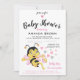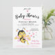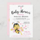 Um convite para chá de menina bonita com um doce desenho animado de abelhas e corações em rosa e cinzas. Design chá de menina alegre e adorável. Fácil de personalizar substituindo o texto pelo seu.