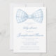 Adorável convite de chá para bebê apresentando uma charmosa ilustração azul de cor-d-água da gravata de arco azul-bebê, fita com um padrão de gingham na parte de trás. Ideal para chás de bebês, temas de Páscoa, convites de aquarela e comemorações de pré-disquete.