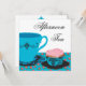 Convites elegantes de chá da tarde com rosas azuis e rosadas.