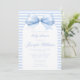 Celebre a chegada do seu pequeno com o nosso chique fofo, Coquette, chamado de chá do bebê. Apresentando arco azul bebê no arco boêmico e padrão riscado no verso, este convite dá o tom perfeito para uma doce celebração de pré-disquete.