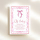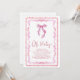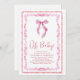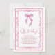 Um convite para chá encantador e giro para uma menina, com quadros vermelhos e cor-de-água cor-de-rosa inspirados em vintage, uma cor d'água cor-de-arco rosa, "Oh Baby" mostrado em um roteiro chic, e o nome da futura mãe e os detalhes do chá na tipografia serif clássica.