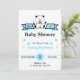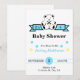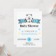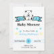 Convite de chá de bebê com ursinho com faixa em fundo branco para menino. O cartão é completamente personalizável, você pode editar o texto e as cores tanto do texto quanto do design, até a cor do fundo pode ser personalizada. Possui letras simples e contemporâneas e acentos circulares para uma reunião divertida e casual que comemora aquele momento especial que está por vir. Se precisar de ajuda para personalizar este cartão, entre em contato com o designer em ArtByLiz@gmx.com e ele será personalizado para você sem nenhum custo adicional.