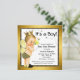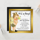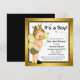 Convite de chá de bebê menino abelha com adorável bebê loiro de cabelo claro vestindo um charmoso traje de abelha em um lindo fundo preto e dourado com abelhas voando. Você pode personalizar facilmente este adorável convite de chá de bebê abelha para o seu evento, simplesmente adicionando seus detalhes no estilo de fonte de sua escolha.