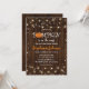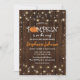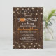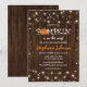 Convites rústicos de chá de bebê de outono com fundo de madeira, luzes cintilantes, uma abóbora de halloween e um modelo de texto moderno que é fácil de personalizar.