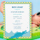 Chá de Ninho de Alligador Azul-Cura Convites com Bolinhas Azul-Aqua e Borda Amarela e Ondas e Bolhas Azuis