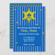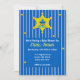 Um chá de fraldas para a futura mãe ou casal. O cartão é azul com listras. Estrela amarela e pacificadora. Azul para um menino. Substitua as informações por suas. A parte de trás deste plano corresponde à cor da frente com as estrelas amarelas. Ambos são arquivos de imagem.