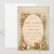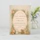 Um design encantador da floresta com uma doce reunião de amigos da floresta sob um suave dossel de contos de fadas. Raposa, cervo, urso, guaxinim e coelho sentam-se juntos em um prado outonal quente, enquadrado por árvores suaves e tons de pergaminho vintage. A paleta terrosa e os detalhes botânicos delicados criam um ambiente aconchegante e nostálgico - perfeito para uma celebração inspirada na natureza. Totalmente personalizável para torná-lo exclusivamente seu.