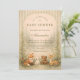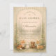 Um design encantador da floresta com uma reunião doce de amigos da floresta sob um dossel suave de livro de histórias. Raposa, cervo, urso, guaxinim e coelho sentam juntos em um prado quente de outono emoldurado por árvores suaves e tons de pergaminho vintage. A paleta terrosa e os detalhes botânicos delicados criam um ambiente aconchegante e nostálgico - perfeito para uma celebração inspirada na natureza. Totalmente personalizável para torná-lo exclusivamente seu.