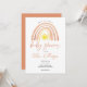 Um convite de chá de bebê fofo com um arco-íris em aquarela boho e sol e tipografia estilosa. Criado por Thisisnotme©
