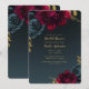 Convites Chá de Bebê Azul Escuro Floral Dourado Folhagem