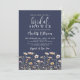 Convites Chá de Bebê Azul Marinho com Flores Silvestres