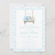 Menino elegante azul de aquarela balançando com um convite para chá de fraldas de padrão floral uniforme.