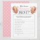 Cartão de jogo de perguntas com aquarela para combinar com a sua coleção de chá de bebê feminino.