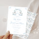 Explore nosso encantador convite para o chá do bebê bebebezinho mostrando um charmoso e fofo cavalo de balanço de madeira azul-bebê com flores de primavera e crista de fita de arco ao redor. Esta design adorável é perfeita para acolher o seu pequeno com alegria e capricho.
