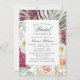 Convites de Chá de Bebê Boho Floral de Aquarela Elegante apresentam um fundo de flores de aquarela elegante com eucalipto, folhas de palmeira, rosas, peônias e samambaias em tons suaves de ameixa, burgundy, verde, pêssego e rosa. Personalizado editando o texto nas caixas de texto fornecidas. Criado por ©Evco Studio www.zazzle.com/store/evcostudio