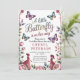 Uma pequena borboleta está a caminho! Celebre sua bebê com este convite de chá de bebê encantador com tema de borboleta. Flores delicadas em aquarela, tons de rosa suave e borboletas a voar criam um clima de jardim sonhador perfeito para celebrações de primavera ou verão. Personalize com os detalhes do seu evento para um lindo souvenir personalizado que os convidados adorarão.