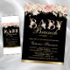 Convite de chá de bebê brunch menina rosa preto e dourado com belas flores em aquarela rosa e dourado com fundo preto. Este convite de chá de bebê rosa preto e dourado é facilmente personalizado para o seu evento, basta adicionar os seus detalhes. Você também pode alterar a cor do fundo.