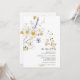 Este convite moderno para Baby Boom apresenta flores silvestres violeta aquarela, camomila rústica, folhas verdes e galhos.
