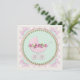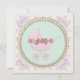 Convites de chá de bebê carruagem elegantes com pérolas, laços e renda rosa e verde. Este convite de chá de bebê rosa e verde é facilmente personalizado para o seu evento adicionando detalhes do evento, estilo de fonte, tamanho e cor da fonte e texto.
