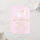 Destacando uma linda cegonha carregando uma entrega muito especial em um fundo rosa macio, este convite de chá de bebê, chá de revelação ou chá de casal é perfeito para todos os pequenos que estão chegando. Adicione os detalhes da celebração em texto dourado para criar o convite perfeito. Desenhado por Thisisnotme