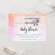 * Cute Vintage Watercolor PEACH PINK sky e vintage Air Plane puxando um IT é uma faixa de GAROTAS. O fundo é um PINK PEACH Sky com algumas nuvens instáveis. A design é muito bonita e divertida e branca e feita para um doce Chá de fraldas de menina. Esta design é neutra em termos de gênero para que o gênero possa ser alterado quando você personalizar este convite para chás de fraldas sob personalização avançada.