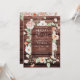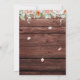 Este design de convite de chá de panela apresenta uma moldura de flores de pêssego e brancas com folhagens, fitas brancas e detalhes em rosa dourado sobre um fundo de madeira quente.