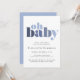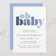 O convite para o feiticeiro do bebê moderno apresenta "oh baby" na grande tipografia moderna em tons de azul. Personalize facilmente os detalhes da aspersão do bebê.