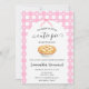 Este convite de chá de bebê "Cutie Pie" apresenta um charmoso design de torta de maçã emoldurado por um fundo gingham rosa suave, flores brancas delicadas e um laço de fita doce. A tipografia cursiva elegante destaca a frase divertida “Oh Baby! A Little Cutie Pie Is on the Way” (Ah, bebê! Um pequeno Cutie Pie está a caminho), criando um tom caloroso e alegre perfeito para celebrar uma nova chegada. Projetado para uso em qualquer época do ano, a paleta de cores pastel suaves oferece um apelo atemporal e versátil, enquanto o texto totalmente personalizável torna fácil personalizar para o seu evento especial.