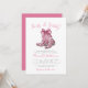 Botas & Bolhas! Convite de Chá de Noiva com Botas Cowboy Rosa Feminina. Celebre a noiva com um toque de charme country e elegância feminina. Este convite apresenta um par de botas cowboy rosa estilizadas abaixo do título, adornadas com um grande laço em aquarela. As botas têm um delicado padrão floral, adicionando um toque chique e caprichoso ao tema western.