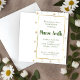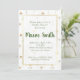 A combinação perfeita de feminino e moderno pode ser encontrada neste convite de flores silvestres com moldura dourada. Pequenas e delicadas flores silvestres semelhantes a margaridas rodeiam uma moldura dourada para um visual caprichoso e vintage, tornando-o perfeito para o seu próximo evento. As molduras douradas criam a borda perfeita para o texto em letra cursiva e tradicional na cor verde hera. O resultado final é um visual fofo e primaveril que é perfeito para aqueles que procuram o sentimento fresco e ensolarado da Primavera capturado em um convite. Este convite é indispensável para o seu próximo chá de bebê, chá de noiva ou chá de casamento!