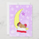 Um doce bebezinho de pele mais escura e cabelos escuros que pode representar um bebê hispânico ou afro-americano. A frente tem um bebê dormindo em uma nuvem com fundo roxo. A parte de trás tem o bebê dormindo na lua.