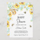Convite de Chá de Bebê da Mamãe Abelha Floral Azul Amarelo