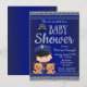 Convite de chá de bebê da polícia canina com adorável bebê usando uniforme policial e dois cachorrinhos em um fundo azul e prata. Este convite de chá de bebê policial é facilmente personalizado para o seu evento, basta adicionar seus detalhes no estilo de fonte de sua escolha.