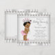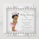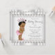 Convite de chá de bebê cor-de-rosa e cinza adorável com princesa étnica hispânica latina indiana afro-americana bebê menina vestindo calças com babados e pérolas em um fundo cor-de-rosa e cinza prateado e cordões de pérolas. Este convite de chá de bebê étnico de menina cor-de-rosa e cinza é facilmente personalizado para o seu evento, adicionando seus detalhes no estilo de letra, cor e fraseado de sua escolha. Design impresso sem pérolas, laços glitter reais, etc.