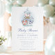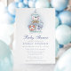 Celebre a chegada iminente de um bebê menino com este convite de chá de bebê temático náutico adorável. Com destaque para um urso em aquarela em um barco à vela com detalhes marinhos, este design é perfeito para uma reunião inspirada no mar. Tons azuis suaves e ilustrações encantadoras adicionam um toque caprichoso à celebração.