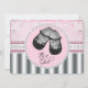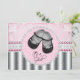 Convite de chá de bebê preto adorável sapatos de bebê elegantes diamantes rosa e cinza prateado e chuveiro de bebê pérola. Este convite de chá de bebê doce menina é facilmente personalizado para o seu evento.