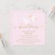 Com uma cegonha fofa carregando uma entrega muito especial, em um fundo rosa suave, este convite de chá de bebê, sprinkle ou chá de casal é perfeito para todos os pequenos que estão a caminho. Adicione os detalhes da celebração em texto dourado para criar o convite perfeito. Criado por Thisisnotme