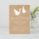 Com uma cegonha fofa carregando uma entrega muito especial, em um fundo rústico neutro kraft boho, este convite de chá de bebê neutro em gênero, sprinkle ou chá de casais é perfeito para todos os pequenos que estão a caminho. Adicione os detalhes da sua celebração em texto elegante para criar o convite perfeito. Criado por Thisisnotme