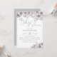 Um convite elegante e delicado ao chá de fraldas, com flores rosas e cinzas desenhadas à mão, com uma mistura de bela Caligrafia Script e tipografia clássica, ao contrário, encontra um fundo de cinza médio. Personalizar com campos de modelo fornecidos.