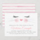 Convite de chá de bebê de gatinho com adorável rosto de gatinho aquarela em um fundo de listras rosa e branco. Estes convites de chá de bebê de gato são facilmente personalizados para o seu evento, basta adicionar seus detalhes.