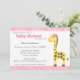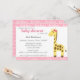 Convites Chá de Bebê de Girafa com Laço Rosa para Menina