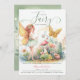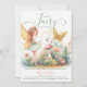 Uma ilustração encantadora de aquarela com uma doce fada em um pequeno jardim encantado com um esquema esmeralda verde e dourado, enfeita este elegante e adorável convite para chá de menina. Perfeito para comemoração da primavera, eventos de Páscoa, fête de jardim de verão, chá de fraldas piquenique charcado ou para comemoração do ano inteiro em homenagem a uma mãe que ama a floresta encantada, tema de fada.
