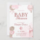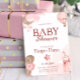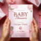 Celebre a chegada iminente de um pequeno com este convite de chá de bebê macio e sonhador. Projetado em tons de rosa suave, este convite apresenta ilustrações encantadoras em aquarela, incluindo uma lua crescente, balão de ar quente, blocos de bebê e flores delicadas — perfeito para uma celebração doce e elegante de uma menina.