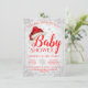 Convites de chá de bebê de Natal com lindo chapéu vermelho do Papai Noel em um belo diamante e fundo de floco de neve de inverno. Estes convites de chá de bebê de Natal com tema de inverno vermelho e branco são facilmente personalizados para o seu evento, basta adicionar seus detalhes.