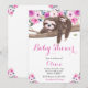 Convites Chá de Bebê de Preguiça Floral Rosa