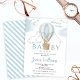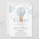 Urso azul bonito no convite de chá do bebê do balão de ar quente. A Aventura aguarda o convite para chás de fraldas temáticos.