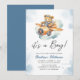 Convite de Chá de Bebê de Urso de Pelúcia em Aquarela para Menino Moderno. Personalizável.
