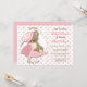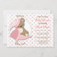 Este chá de fraldas bonito apresenta um adorável ursinho marrom e adormecido com um boné e cobertores cor-de-rosa e listrados brancos. A imagem é enquadrada num círculo fino de linha marrom, e colocada sobre um fundo polkadot rosa e marrom. Há um campo de texto personalizado em marrom no topo e no fundo, e suas informações estão em rosa escuro e marrom à direita. A parte de trás do convite é rosa correspondente. Certifique-se de ver os produtos correspondentes em nossa loja.
