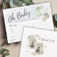 Convite de chá de bebê fofo - neutro em termos de gênero - um lado apresenta dois sapatos de bebê fofos e as palavras "um convite especial" enquanto o outro apresenta uma cegonha em um círculo floral carregando um pequeno embrulho de alegria em um cobertor de bebê verde claro. Todos os itens pré-impressos com linhas que permitem que você escreva os detalhes como achar melhor. Ótimo para chás "rotativos" onde você quer que os convidados sejam escalados - basta escrever a hora que você quer que eles compareçam. Tantas coisas ótimas que você pode fazer com uma tela "em branco".
