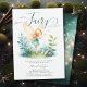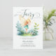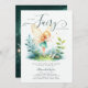 Uma ilustração encantadora de aquarela com uma doce fada em um pequeno jardim encantado com um esquema esmeralda verde e dourado, enfeita este elegante e adorável convite para chá de menina. Perfeito para comemoração da primavera, eventos de Páscoa, fête de jardim de verão, chá de fraldas piquenique charcado ou para comemoração do ano inteiro em homenagem a uma mãe que ama a floresta encantada, tema de fada.